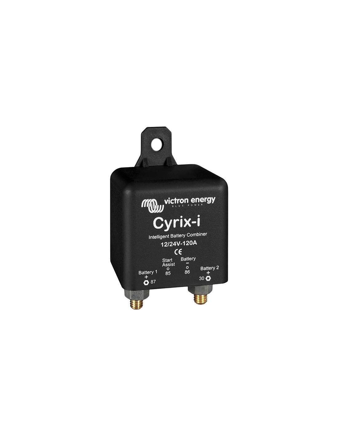 El combinador de baterías CYRIXes un relé reforzado controlado por microprocesador que conecta automáticamente las baterías en paralelo cuando una de ellas ha alcanzado una tensión preestablecida, y las desconecta cuando la tensión disminuye por debajo del nivel de flotación.