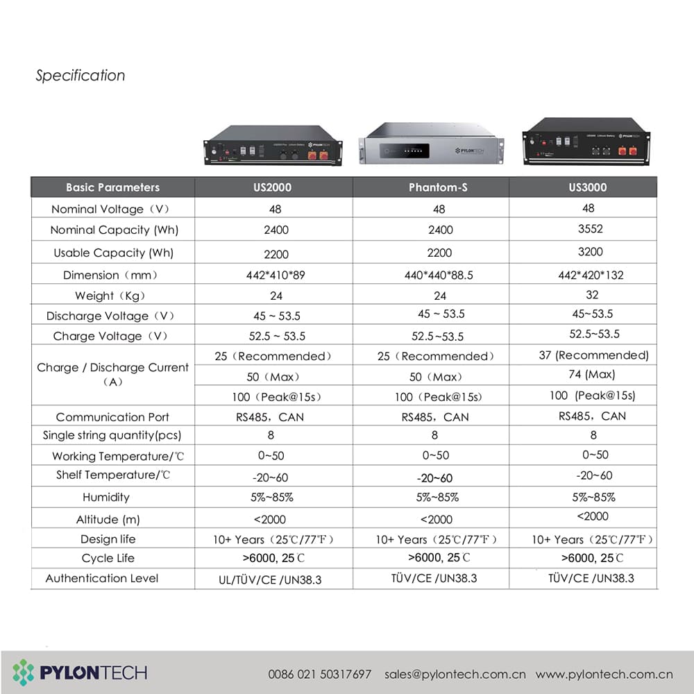 Batería de Litio PYLONTECH en Rack 3,5Kw 48V US3000