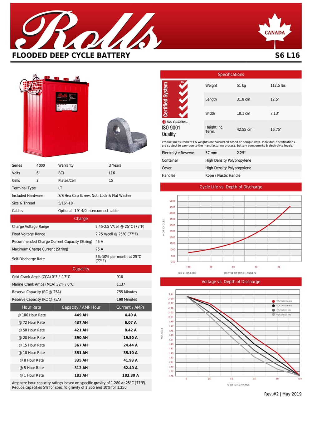 Batería solar Rolls S6 L16 (S-480) 6V/449Ah C100