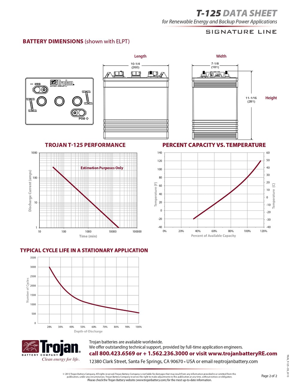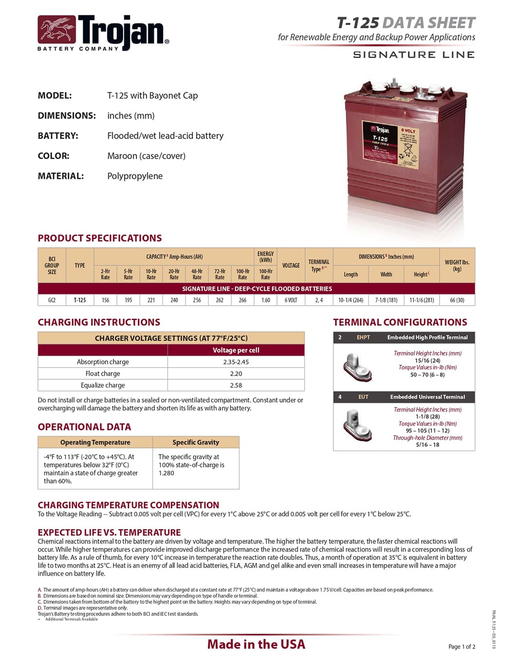 Batería Trojan T-125 6V/266Ah C100