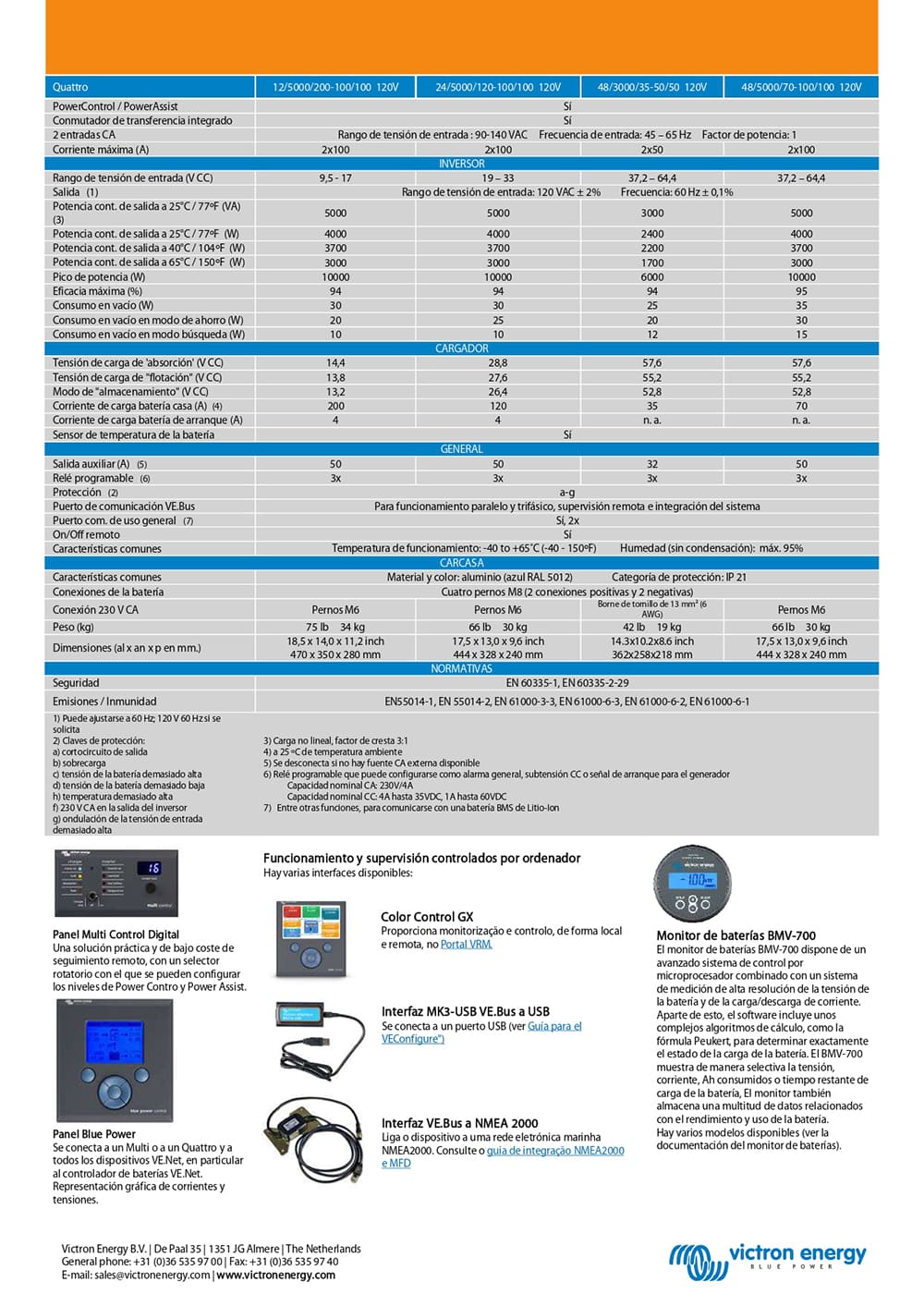 Inversor Victron Quattro Con Cargador 48V/5000VA-70-100-100