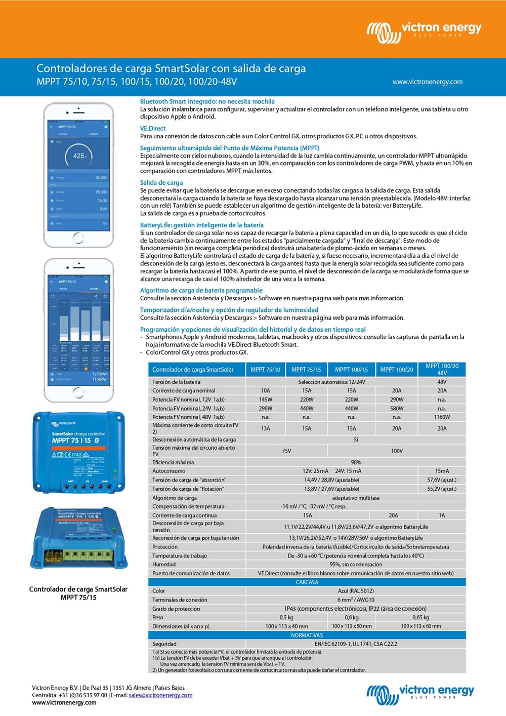 Regulador de carga Victron SmartSolar MPPT multifunción 100/20 48V