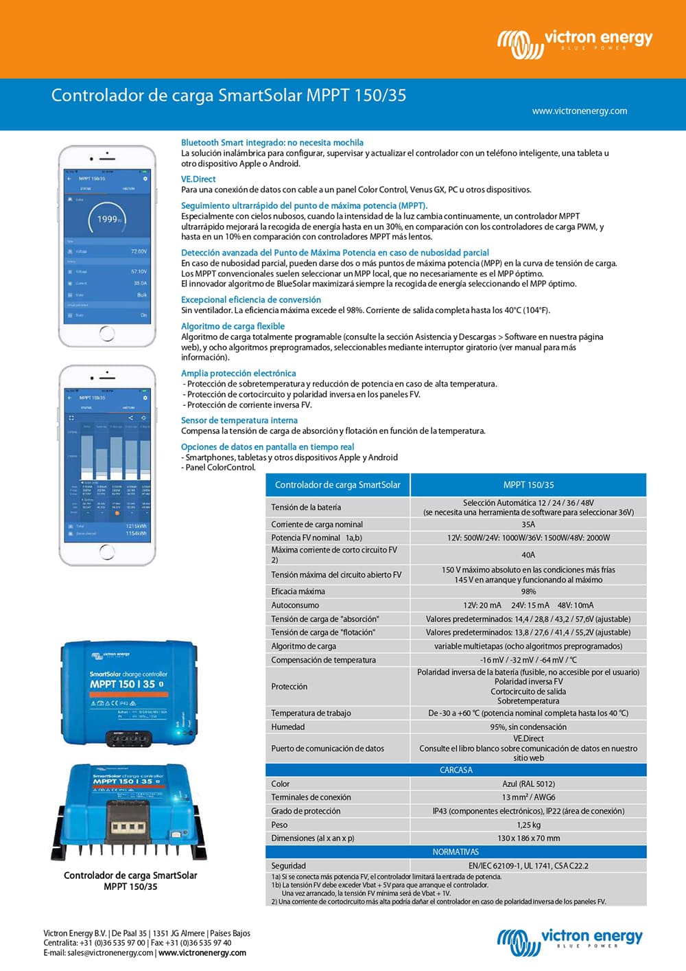 Regulador de carga Victron SmartSolar MPPT multifunción 150/35