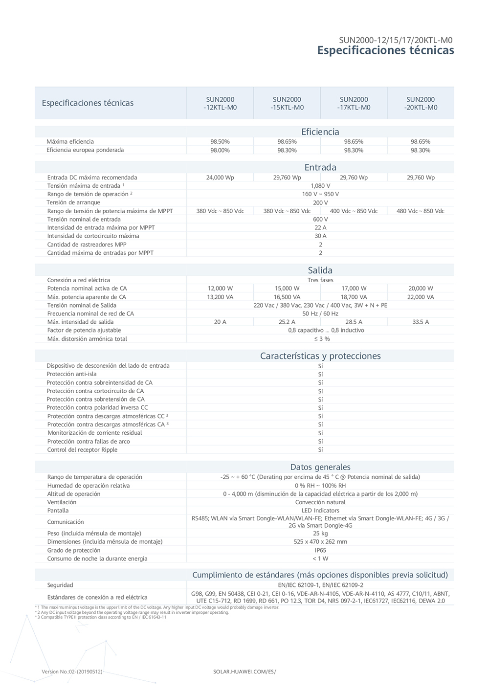 Rango de tensión de potencia máxima de MPPT: 400 Vdc ~ 850 Vdc
