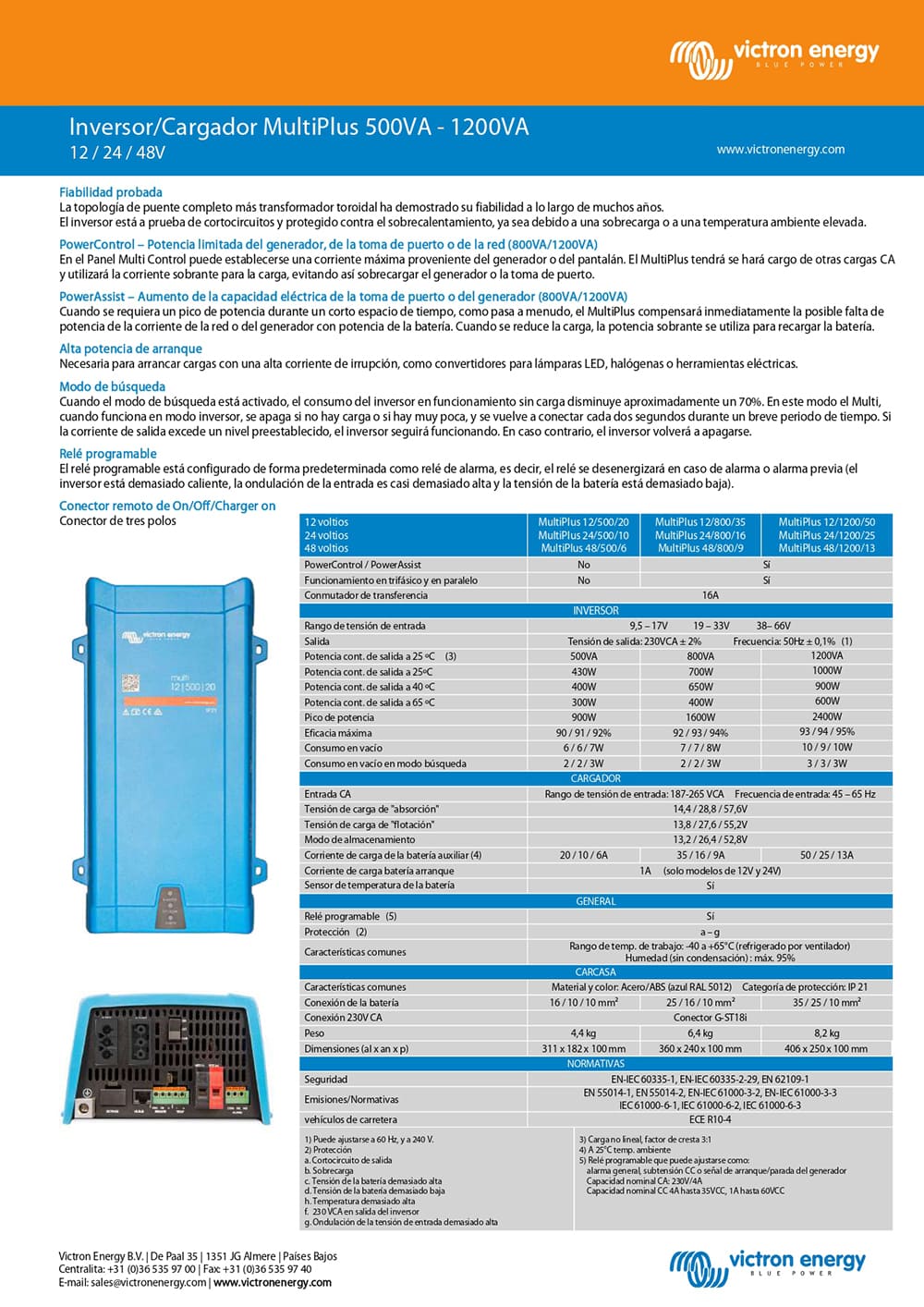 Potencia de salida a 25ºC (carga no lineal): 1200VA
