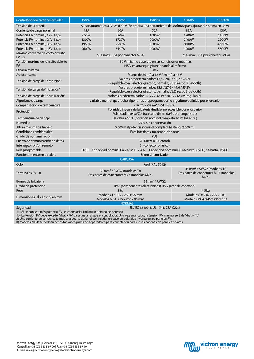 Regulador de carga Victron SmartSolar MPPT multifunción 150/85-Tr